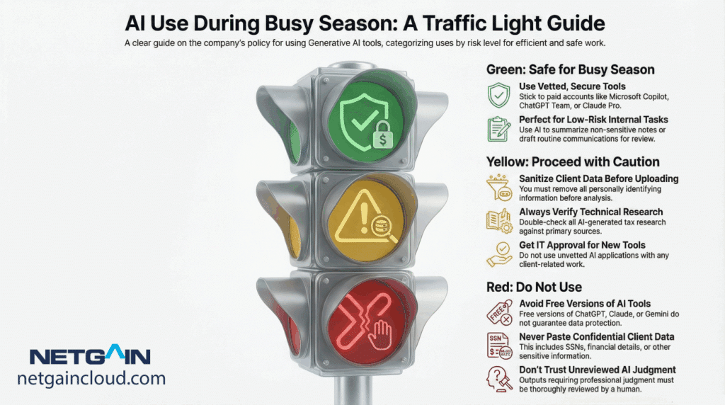 If you want a second set of eyes on where AI guardrails make sense for your firm and how they fit into broader busy season readiness, Netgain works with CPA firms to help clarify expectations and reduce shadow usage risk. You can start a conversation here.